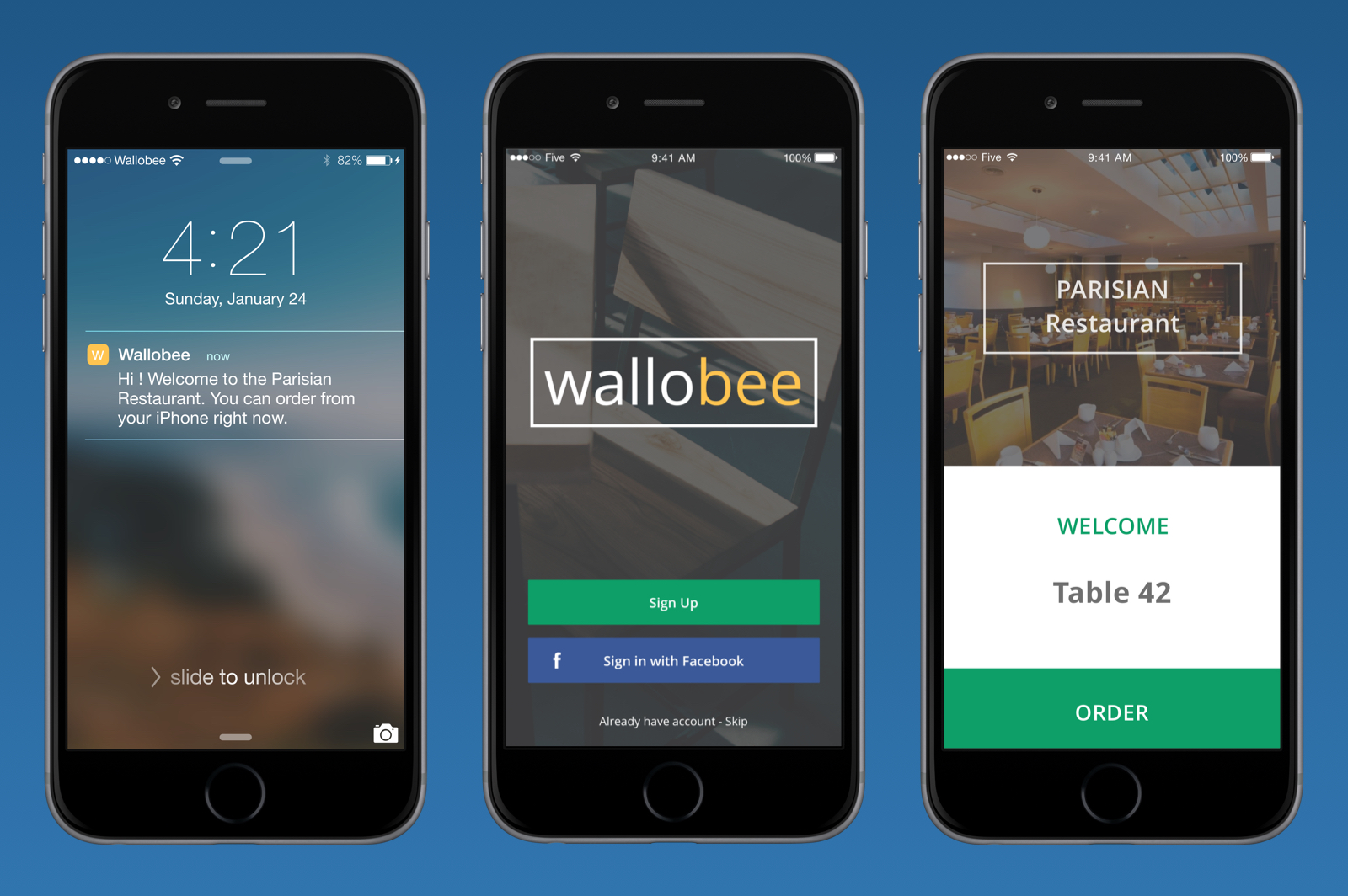 So our solution was 3 different mobile applications and a beacon installed on each table:
