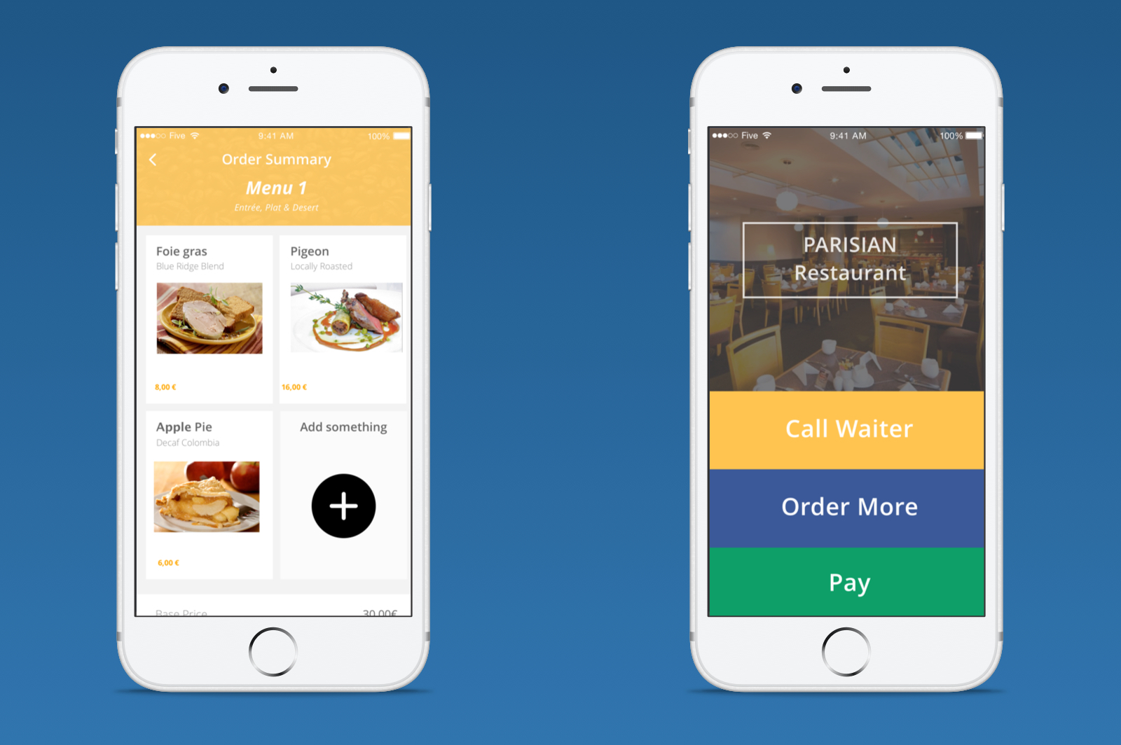 - The first app is for the client, they can use it to order their food on an interactive menu and at the end, to pay directly from the app.